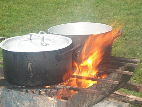 Cuisine au feu de bois comme il se doit .....