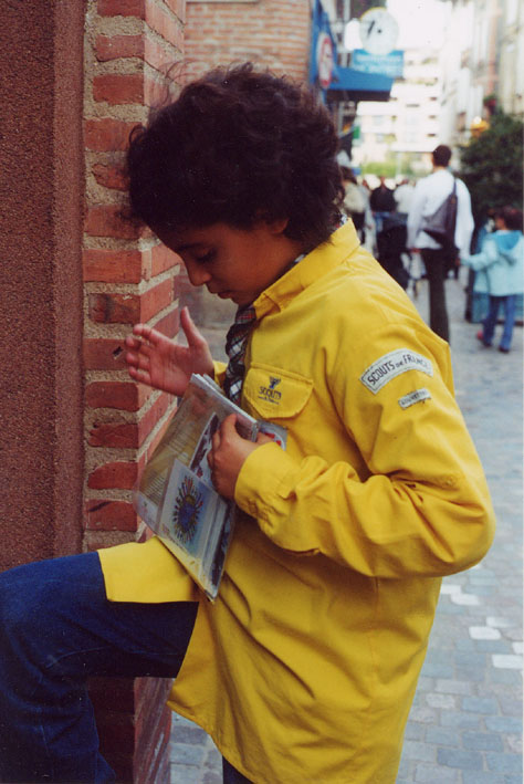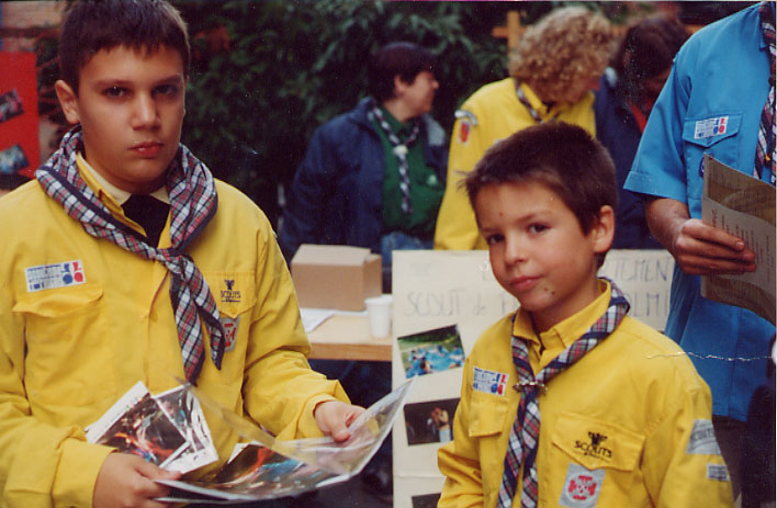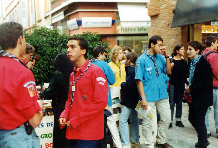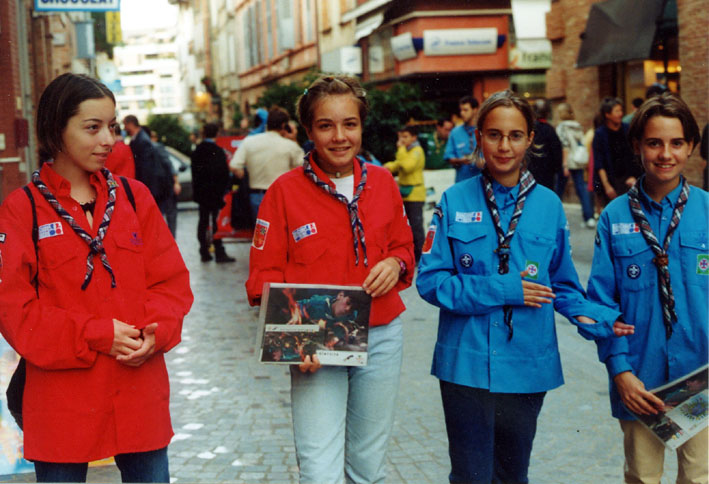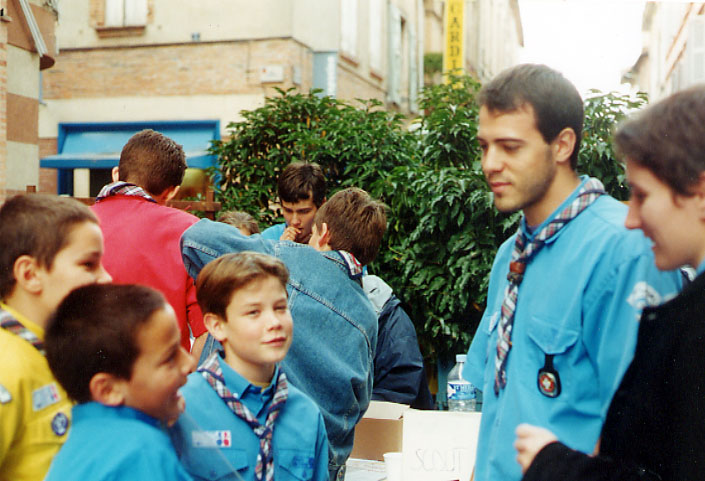 monsieur est venu nous voir pour nous apprendre à vendre. Le matin on est parti vendre nos calendriers au marché. On était en petits groupes avec des Scouts et des Pionniers, on expliquait aux gens ce qu'on ferait avec l'argent. Il y avait plein de monde. Nous sommes revenus car l'heure de notre pique nique était arrivée. On a mangé assis par terre au milieu de la ville sur la place Pénélope. Nous nous sommes bien régalés et on a joué. On était prêt pour repartir pour la vente et faire aussi bien que le matin ou même mieux !!! Pour l'après- midi nous nous sommes installés dans la rue piétonne. Les responsables tenaient le stand pour discuter avec des gens et nous on s'est éparpillé dans le centre ville pour parler aux passants des scouts et de nos calendriers. Ensuite on est allé plus loin où il y avait moins de magasins et plus de maisons et on a sonné aux portes .Des fois c'est moi qui ai parlé ,et une dame a été intéressée et elle m'a acheté un calendrier. Nous nous sommes quittés très contents de notre journée car nous avons vendu tous les calendriers et les chefs nous ont félicités ÉLODIE Louvette. (Propos recueillis |